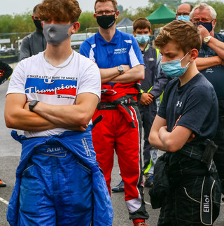 The Final was looking quite uneventful but started to heat up in the last 3 laps. After a good performance in the morning, Freya Woodall (16) sadly retired after the first lap. During these last 3 laps, Luke Jarman (18) managed to pull alongside Jessica Fitch-Hall (22) but backed out at the last moment. Then, the rain came and with everyone on slicks the order started to shuffle. Luke Bate (95) tagged the rear of Charlie Gromett (66) coming into Senna but valiantly let him back through. Charlie Gromett (66) was on the charge to catch Jake Cox (26) and managed to snatch 2nd from him. Jake Cox (26) bogged down coming past Oaktree on the last lap allowing Luke Bate (95) to push him into 4th.